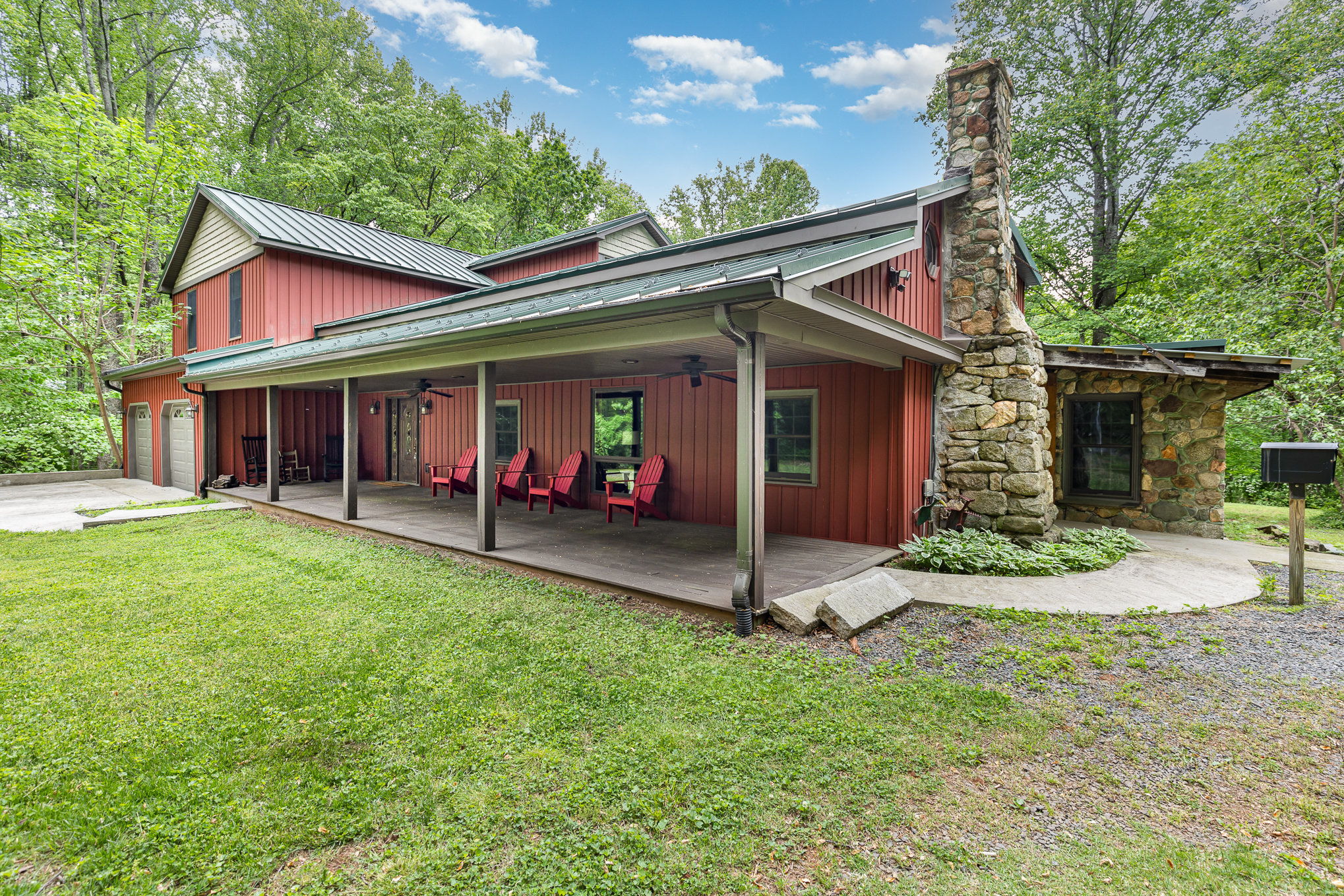 Escape to your private oasis in the heart of Virginia’s countryside! Nestled on over 17 acres of serene, picturesque land, this remarkable single-owner home offers over 7,000 square feet of living space, complete with an ELEVATOR, multiple kitchens and two apartment-style areas—ideal for multi-generational living, guest accommodations, or rental income opportunities. In total, this home has 5 bedrooms and 4 full baths plus 2 dens/libraries, loft & bonus room. The original cabin-style home was completely renovated and expanded in 2008 to include TWO additional apartments with private entrances from outside as well as inside to rest of home. Enter through the impressive two-story foyer with exposed beams, a leaded glass front door with sidelights, and slate tile flooring. The original portion of the home features solid pine and maple hardwood floors, log walls, a beautiful stone hearth with wood stove, handmade doors, exposed beams, artisan-made iron railings, maple and poplar paneling, built-in bookcases, nooks and crannies, and TONS of rustic charm to make you feel right at home. The expansive main kitchen is flanked on either side by stone walls and includes a spacious center island, upgraded countertops, stainless steel appliances, and plenty of space for a dining table. Step through one stone wall and down into the formal dining room with knotty pine walls, exposed beams, and gorgeous views of the picturesque yard. There is also a large entertainer's closet to hold all of your serving pieces, china, and eventware. The main level den is ideal for a home office or library, and the game/craft room with kitchenette is great for recreation and hobbies. The upper level of the main house features three bedrooms with a loft-style sitting area complete with a unique vintage car dashboard desk built-in. The stately owner's suite is packed with custom details, from the stunning wood-stained molding to the plantation shutters and sitting room. You'll never run out of storage in the massive walk-in closet. The luxury en suite bath includes custom tile work, a large jetted soaking tub and a walk-in shower. One of two laundry areas can be accessed off the owner's suite. Head up to the upper level (added in 2008) to find a spacious apartment complete with hardwood flooring, kitchen with island and breakfast bar, living room, dining room, private deck, home office with second story windows, massive bedroom with sitting area and giant walk-in closet, and a luxury bathroom including a jetted soaking tub, walk-in shower with custom tile, water closet with port-hole window, and tons of storage cabinets. This apartment also has its own washer and dryer hookup. An additional walk-out basement level apartment includes a full kitchen with island, full-sized windows, living room, dining area, bedroom, and full bath. The elevator services all floors of the home. Enjoy your morning coffee on the rocking chair front porch or dine al-fresco on the covered deck off the kitchen, surrounded by peaceful, wildlife-filled scenery and a natural spring on the property. Multiple outbuildings provide versatile storage solutions, including a large shed with a garage door for commercial equipment, a charming pump house, and a root cellar. Exterior floodlights, a gravel driveway, and a tin roof with snow birds enhance the home’s functionality. Recent upgrades include a tankless hot water heater and regular septic maintenance, ensuring the property is move-in ready. You will never run out of storage in this home! This countryside retreat is the perfect blend of modern convenience and tranquil living—schedule your tour today and experience the beauty and versatility of this extraordinary property!